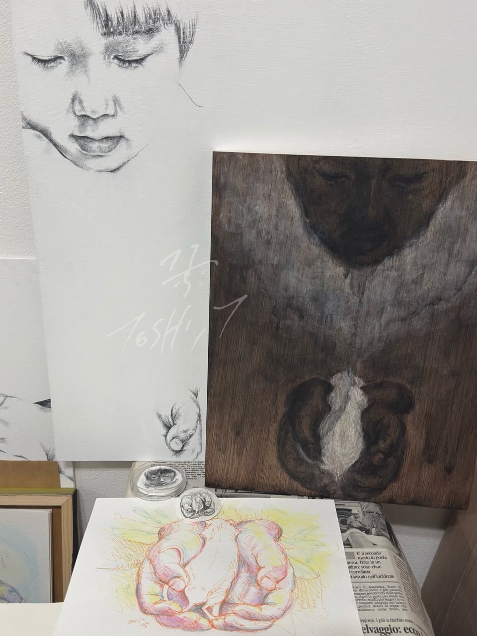 この作品のコンセプトは、現在開催中のオンライン絵画展にて読むことができます。 展示会は入場無料、時間・回数制限などもありませんので、ご都合の良い時にぜひお越しください。 「ビフレスト展」会場はこちら(3Dバーチャルギャラリー) https://sv60.3d-gallery.net/?uid=OxY0GpmgrD5dH8 2025 水彩、鉛筆、ペン、木製パネル 260×330mm ※作品にヒートンは付いていません。 TOSHI TAKAHASHI(トシ タカハシ) https://r7s2011.base.shop/p/00005 ⓘご購入に関する注意事項などは SHOP GUIDE をご確認ください。 https://r7s2011.base.shop/p/00012