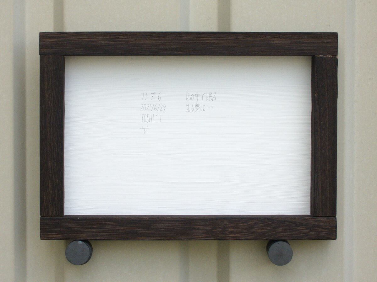 ヒートンなどは付いていませんが、枠を画鋲などに引っ掛けて飾ることができます。