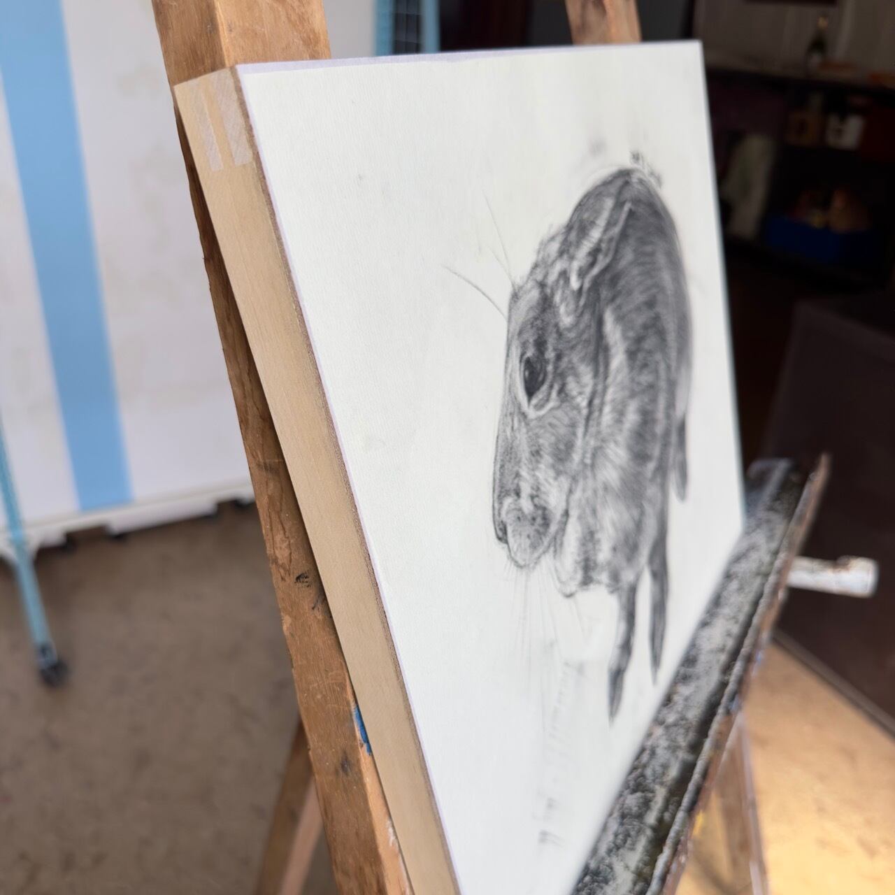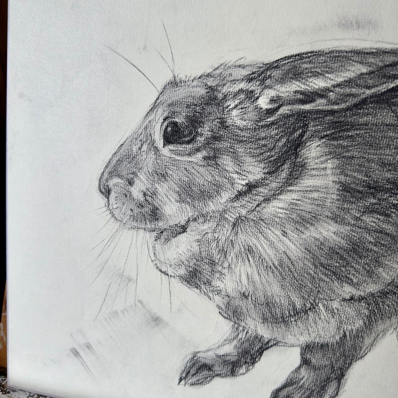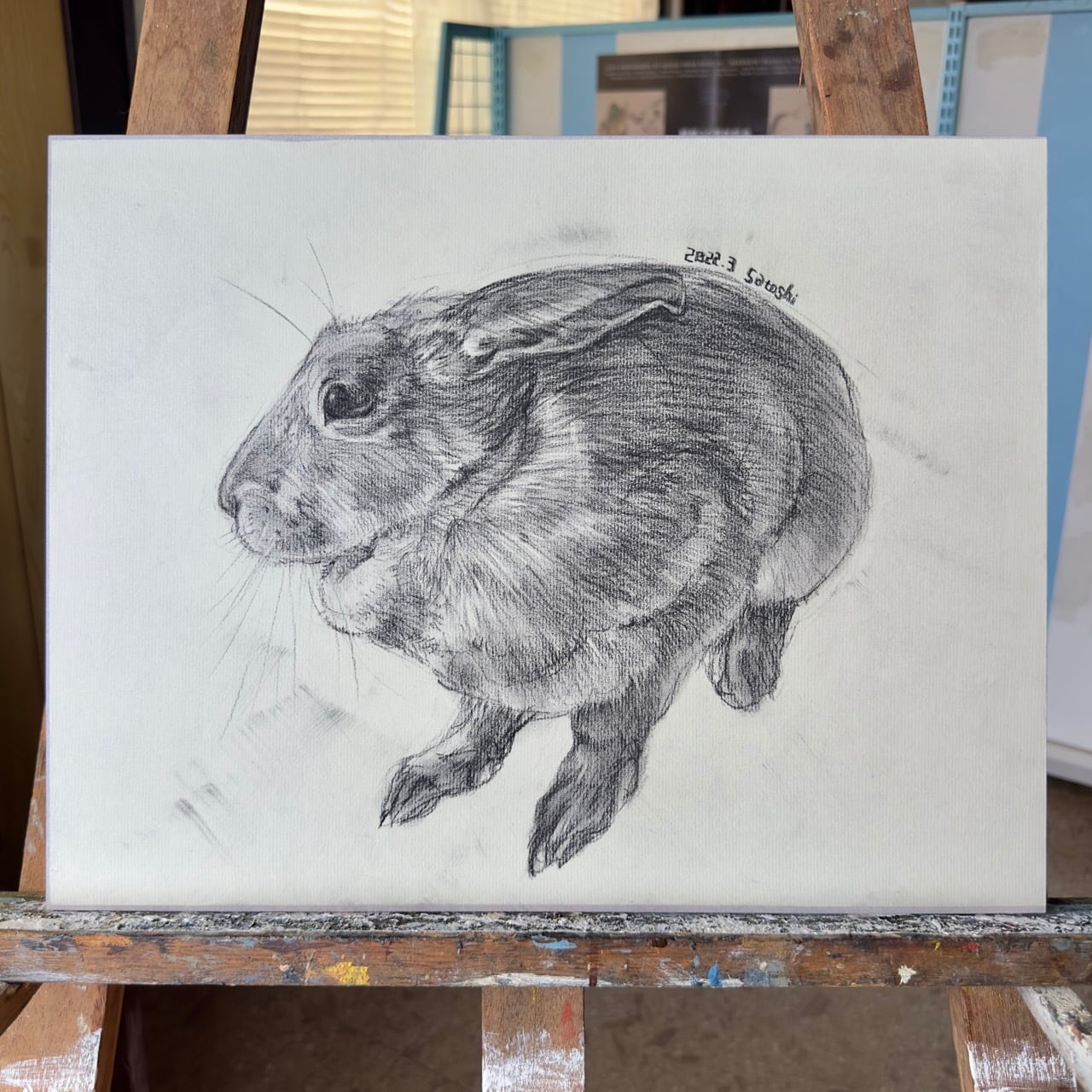 木炭鉛筆で描いたウサギです。強めのストロークで描いています。